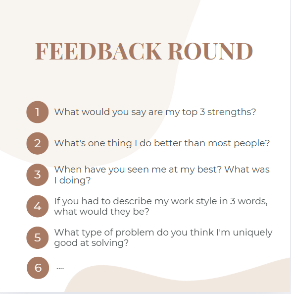 What I am sharing with you today is a (simplified) document of what I work on almost every week: The Feedback Round
